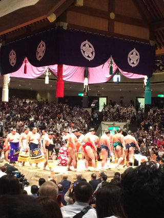 大相撲観戦。 おもしろい! あっと言う間に終わっちゃった。 こういう日本の伝統を大切にしたいなー と思った。 貴重な体験をさせてもらいました。 感謝。