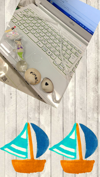 幕張の浜で休憩中に娘へ貝殻のお土産。